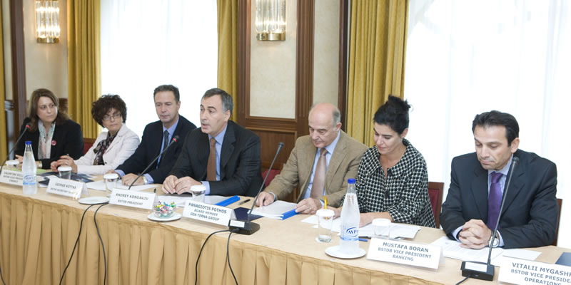 On October 5, 2010 BSTDB held a signing ceremony for a loan agreement with the construction company Terna S.A. (GEK-Terna Group, Greece) in Thessaloniki . The EUR 20 million agreement was signed by Andrey Kondakov, BSTDB President and Panagiotis Pothos, Board Member of GEK-Terna Group. The signing was followed by a press conference where Mr. Kondakov inter alia presented the BSTDB plans for developing operations in Greece, as well as answered questions regarding the recent upgrade of the Bank's credit rating from Baa1 to A3 by Moody's.
