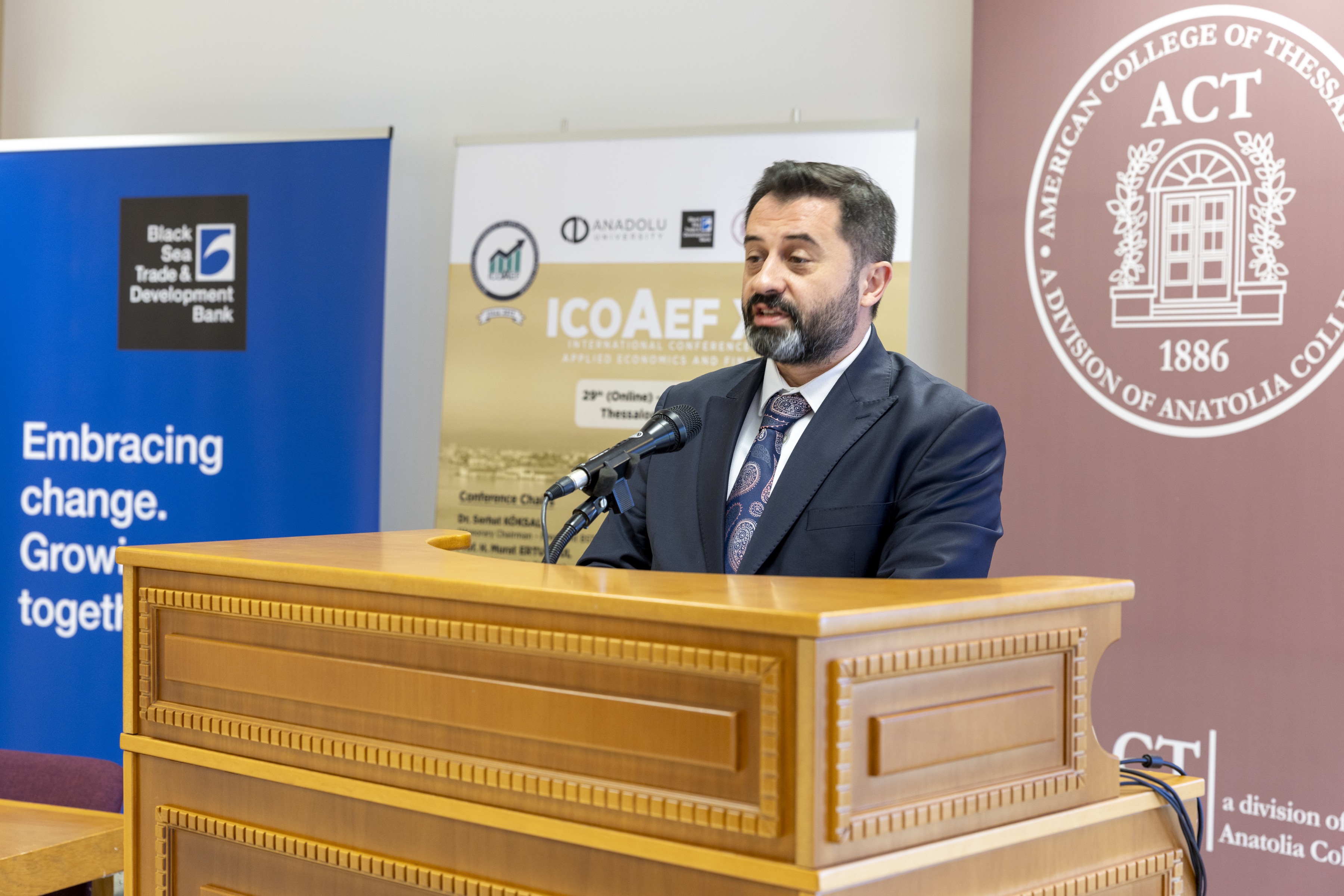 The Black Sea Trade & Development Bank (BSTDB) supported the 13th International Conference on Applied Economics and Finance (ICOAEF XIII), held on 29–30 April 2025 in Thessaloniki, Greece. Co-organized by Anadolu University, Aristotle University of Thessaloniki (AUTH), and Anatolia College, the conference offered a dynamic platform for researchers, policymakers, and industry professionals to exchange insights on the latest developments in Economics, Business, and Finance.
