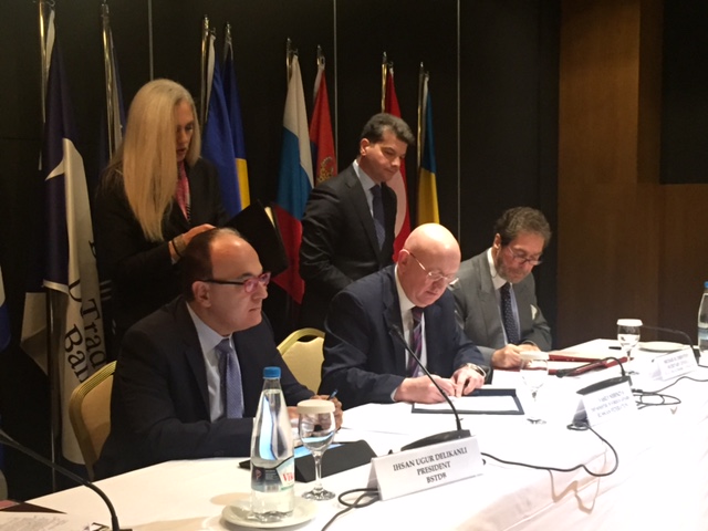 The Agreement was signed today in Thessaloniki by Vasily Nebenzya, the Deputy Minister of Foreign Affairs of the Russian Federation, Ambassador Michael Christides the Secretary General of the BSEC Permanent International Secretariat, and Ihsan Ugur Delikanli, the BSTDB President. .